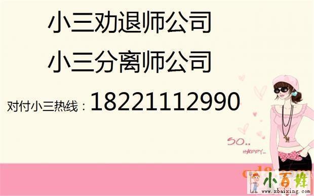 小三劝退师小三分离师挽救婚姻公司对付小三公司本公司是一家专业处理第三者插足婚姻的公司,公司凭借强大的婚姻律师团队和心理咨询团队,专业处理各种婚外情以及婚姻遇到的问题。下设:第三者劝退分离团队,婚外情处...